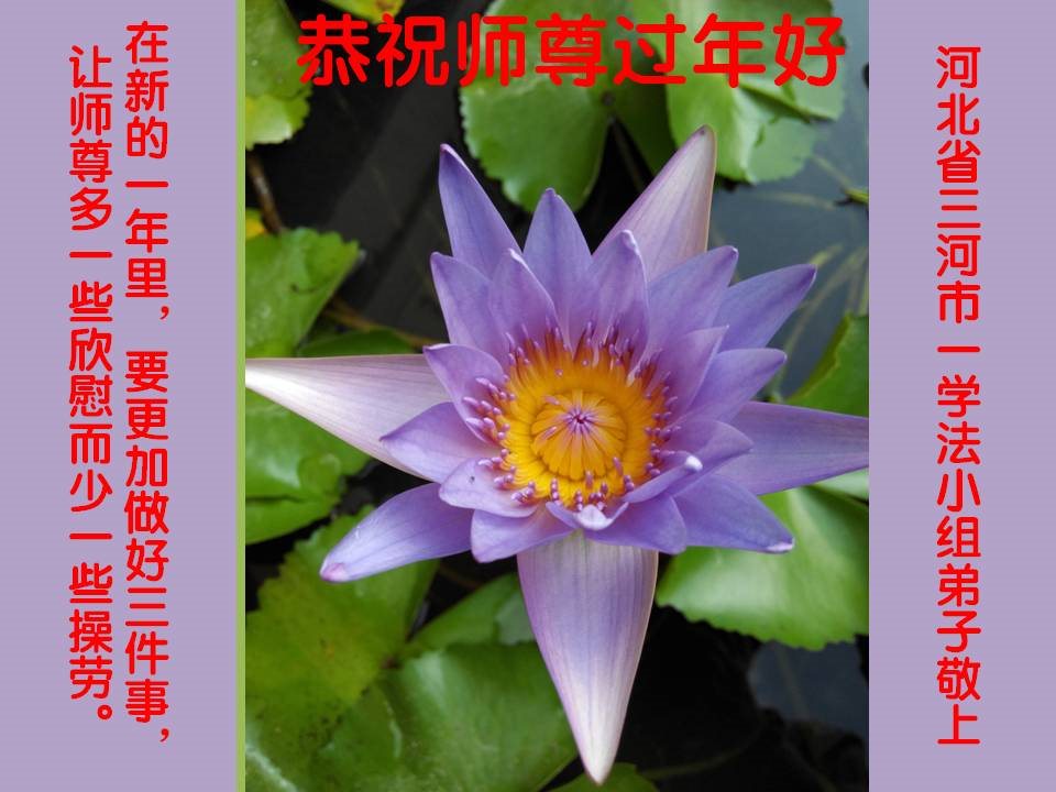 在此佳节到来之际,大陆各地自发成立的学法小组(共同阅读法轮大法师父著作《转法轮》)成员共同恭贺师父新年快乐!