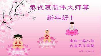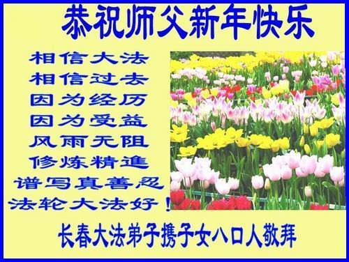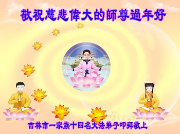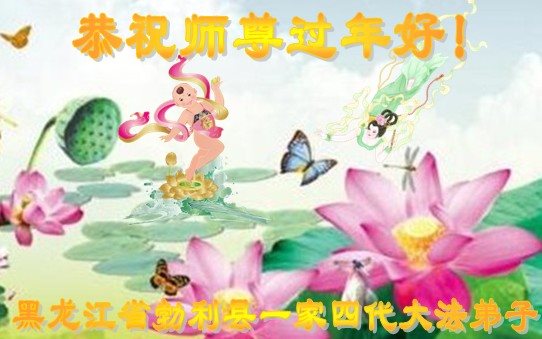 我们姐妹几个大法弟子及四代家人,真诚的向师父问好,祝师父新年快乐!感谢师父的慈悲救度,珍惜师父给众生延长的时间。作为弟子一定再接再厉,努力多救人。不修炼的家人表示,一定一如既往的支持大法弟子做好三件事,用实际行动支持大法。