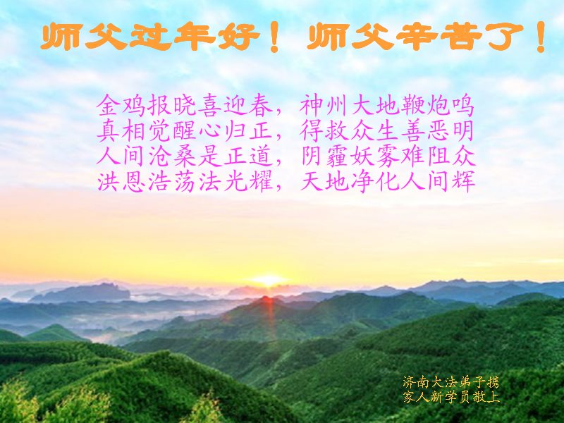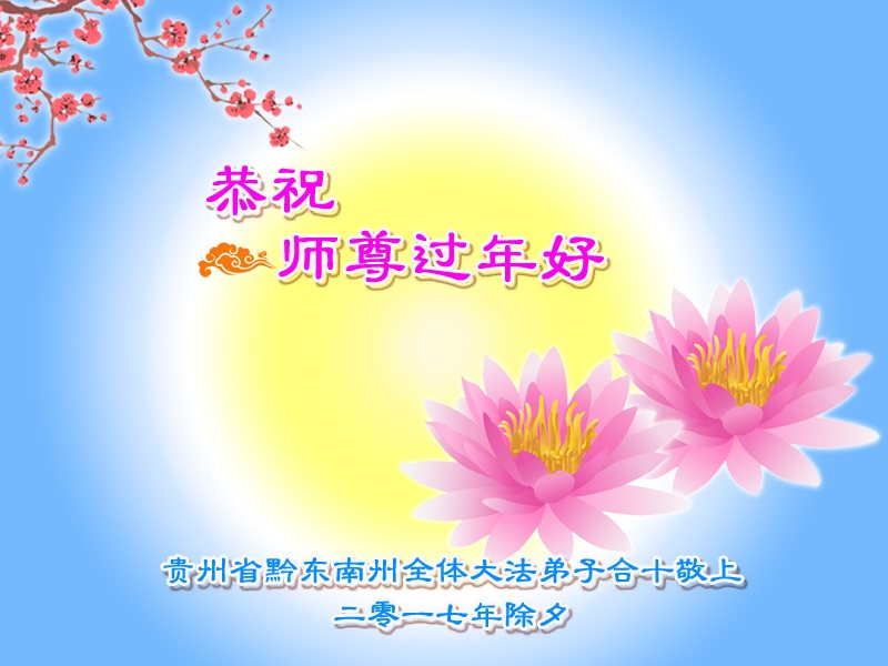 【明慧网二零一七年一月三十日】(明慧网通讯员大陆报道)二零一七年中国传统新年到了,刚刚走入法轮大法修炼的新学员们恭贺师尊过年好!