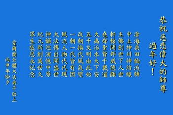 新年到,弟子向师尊拜年!今年弟子要抓紧学法、炼功,发正念,修心性,做一个真正的大法弟子。