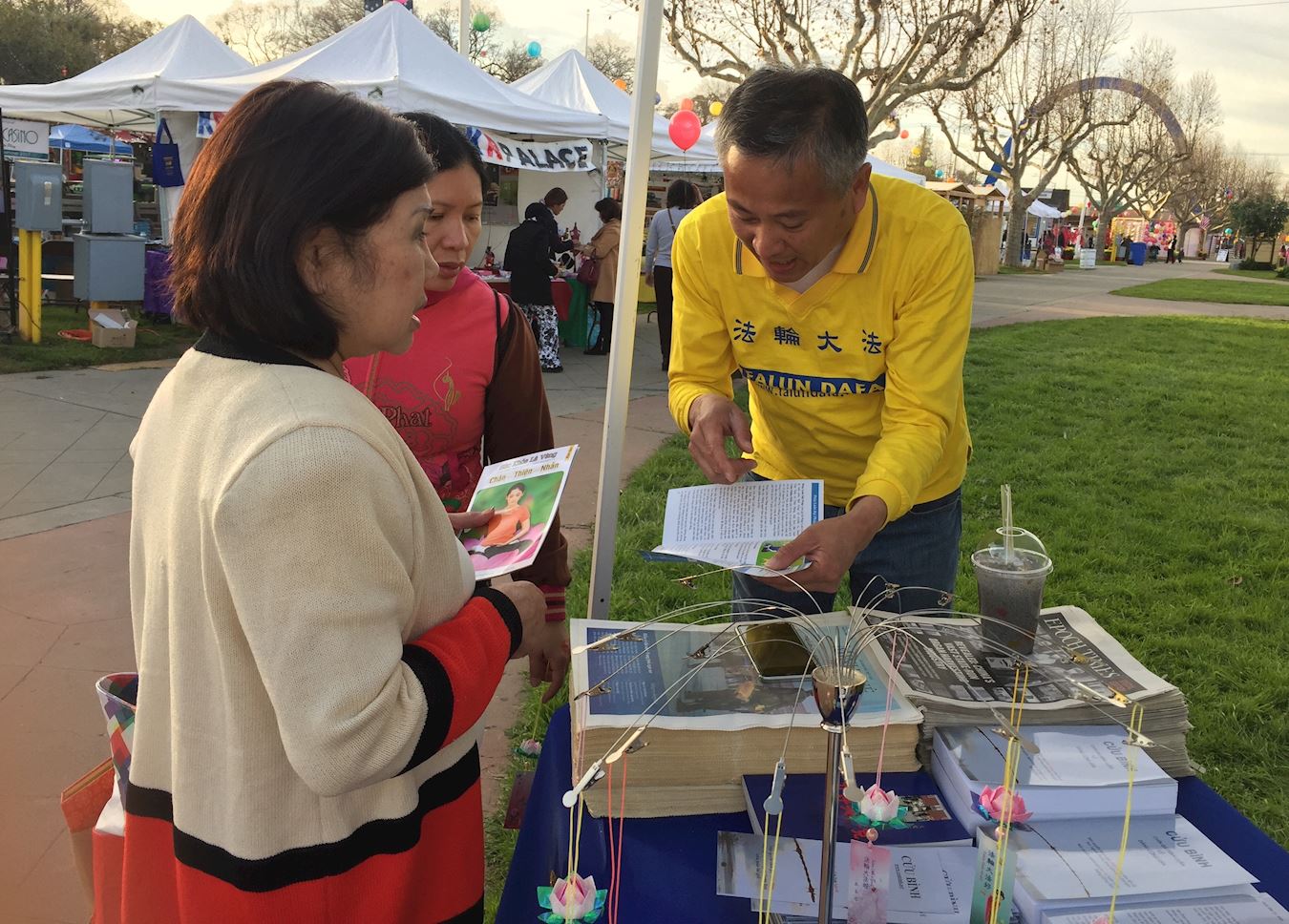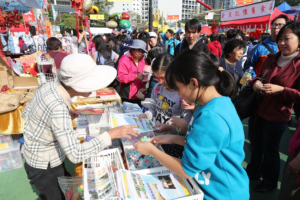 过年前在维园年宵市场开设的真相摊位,也一再有市民购请大法书,或询问如何学炼法轮功。负责真相摊位的胡太说,民众对了解真相的态度越来越正面,法轮功学员在摊位免费派发真相单张、报纸、特刊,以及真相小莲花、锁匙扣、福字帖等小礼品,很多市民开心的接过。也有不少市民在摊位前挑选,一次过拿走几种。其中最受欢迎是精美的真相小莲花,未到大除夕晚上,几千个全部送光。此外,过万份真相福字帖及明慧年历,在摊位结束前也派发一空。