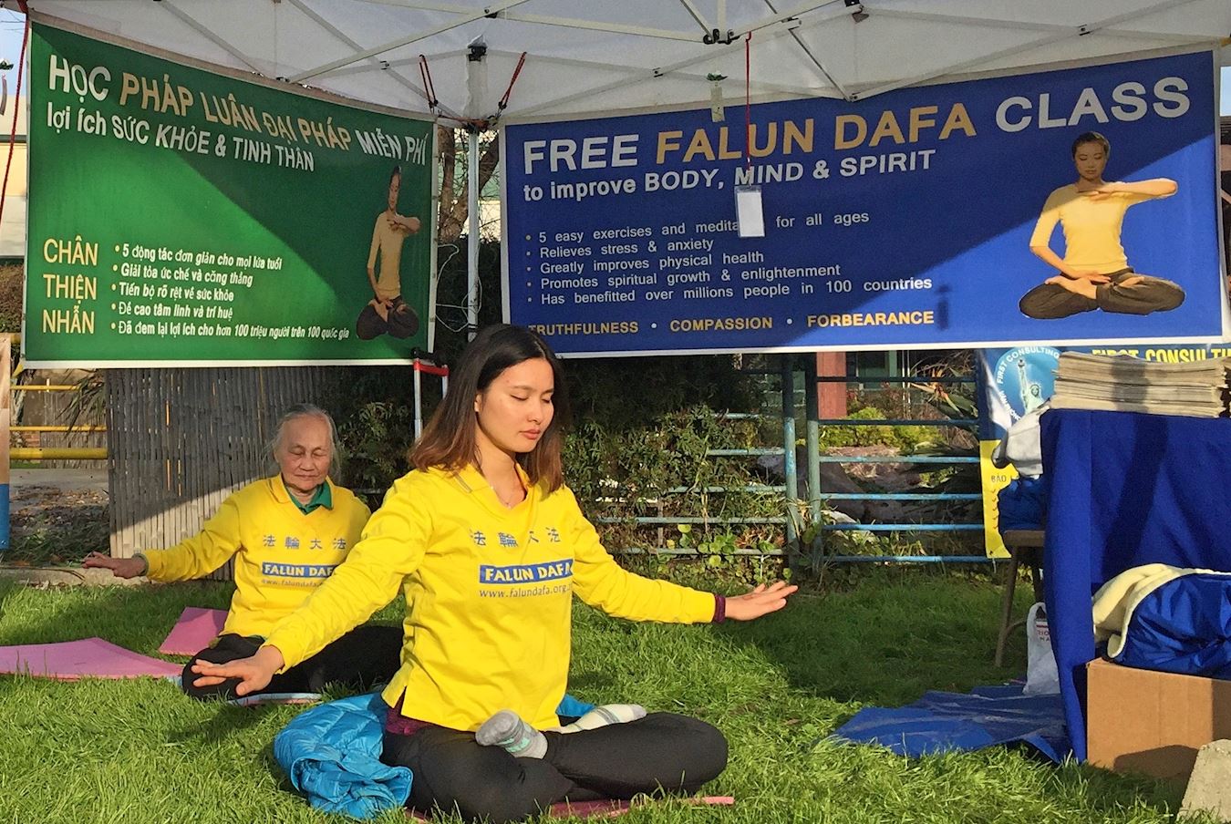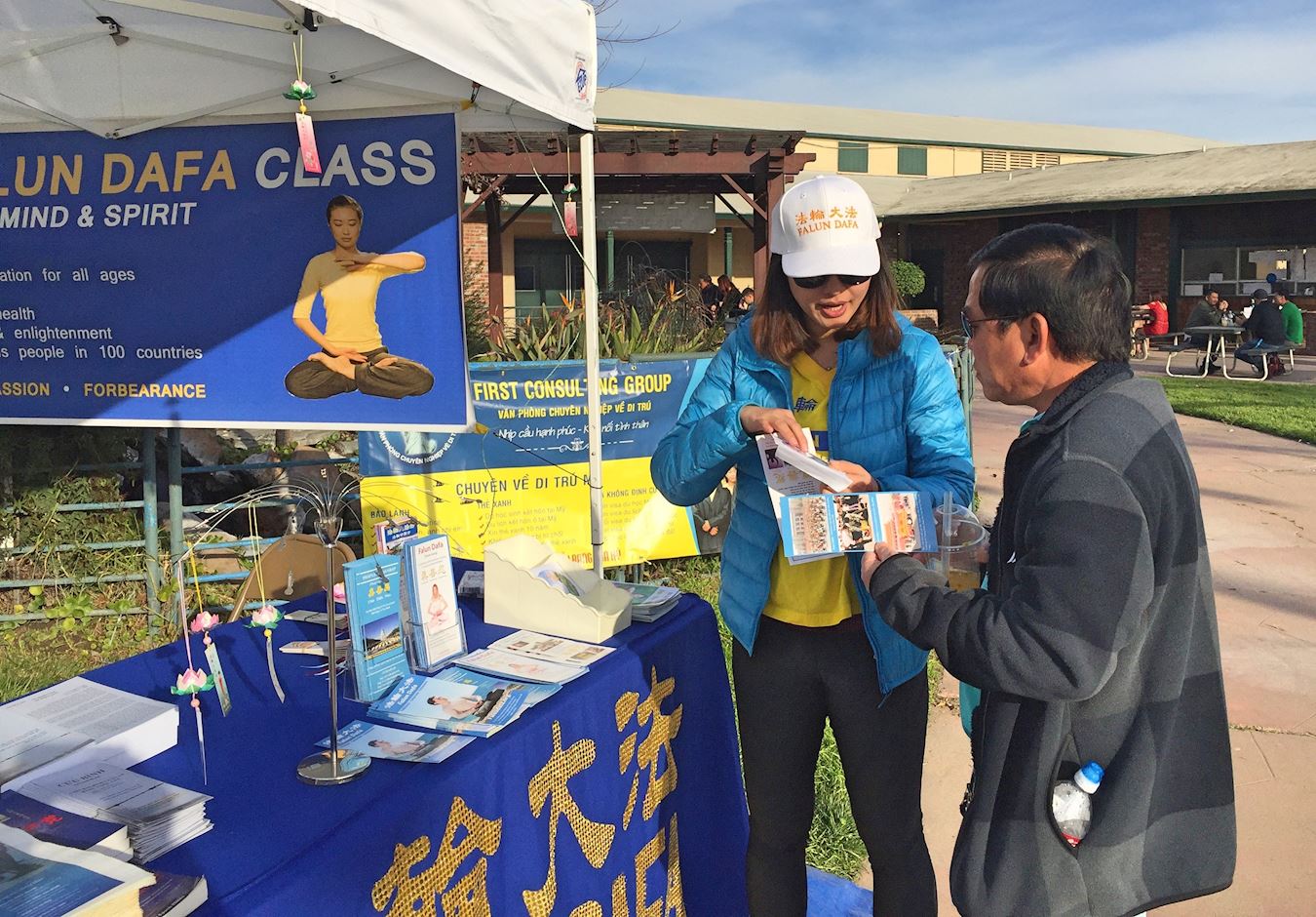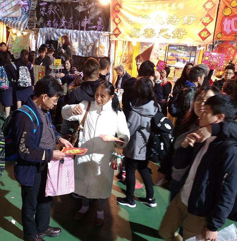 法轮功学员讲真相越铺越开,三退义工、法轮功学员阿容说:“对明白真相后的世人,三退是很容易的,因为人人都想平安!”她举例,法轮功学员在年宵市场开办的真相摊位,有一天来了三个大陆学生,带头的一人看到她发《明慧周报》,满睑笑容地说:“啊!这是:法轮大法好!天灭中共!”