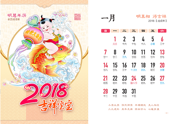 2018年明慧年历小册子:吉祥宝宝