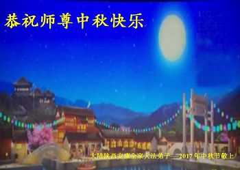 2017年中秋节到来了,中国大陆各地了解了法轮大法真相的世人恭祝李大师中秋快乐!借明慧网转达他们对李大师的诚挚敬意。