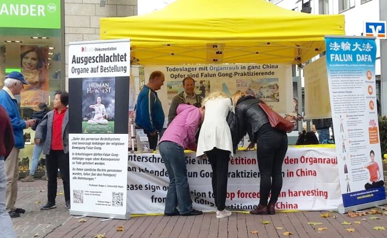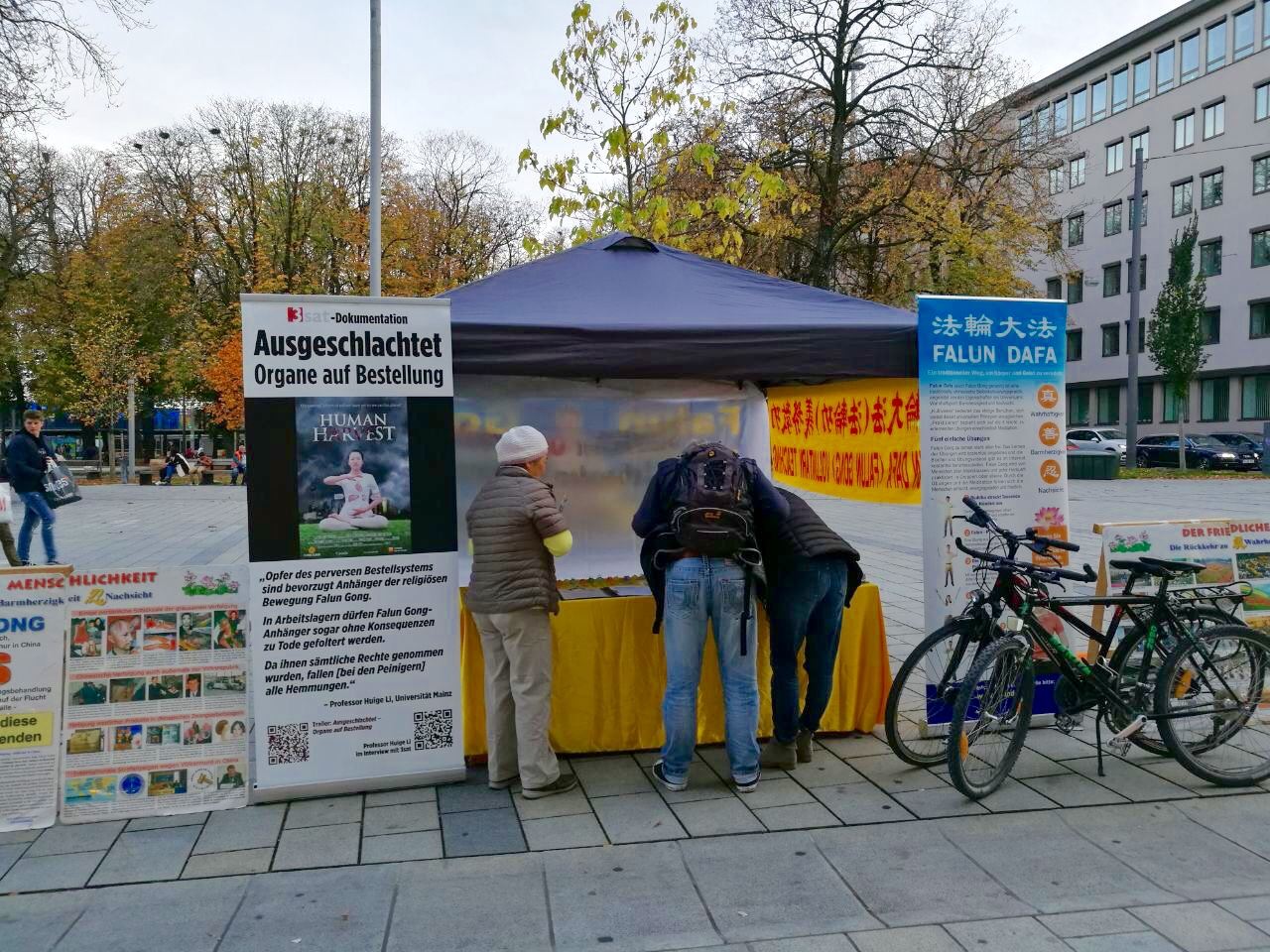 慕尼黑法轮功学员于二零一七年十月二十一日在塔尔大街(Tal)举办揭露中共迫害法轮功及活体摘取法轮功学员器官的活动。活动吸引了当地民众和游客的关注,除了德国民众之外,还有很多各国民众也纷纷签名声援法轮功学员。