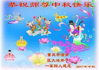 中秋佳节,世界各地法轮功学员向慈悲伟大的师父致以节日问候,感恩师尊救度之恩,并表示要修好自己,救度更多世人。
