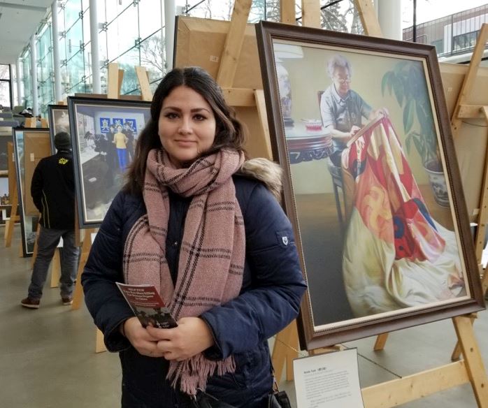 佳姿敏·波尼松尼女士(Jazmin Bonizzoni)看完畫展后表示,“作为第一代加籍智利人,我同情法轮大法追随者所经历的艰辛与迫害。这些作品激励我为世界更美好的未来而努力。”