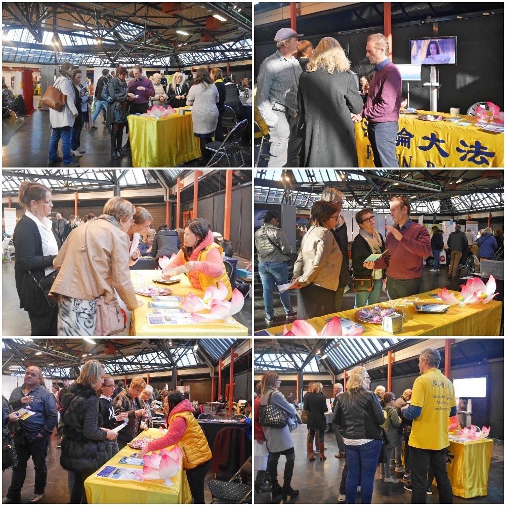 ![]() 图1:二零一七年十一月五日,比利时的法轮功学员参加了在哈瑟尔特市召开的健康博览会,许多人到展位了解法轮功。 |