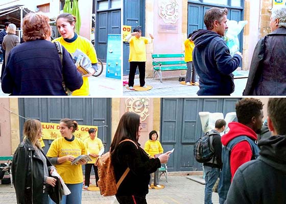 塞浦路斯法轮功学员在首都尼科西亚老城区演示功法,散发传单,传播法轮功的美好,呼吁人们关注发生在中国对法轮功学员的残酷迫害。