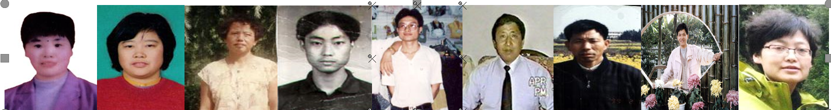 ![]() 南昌市被迫害致死或含冤离世的法轮功学员(左起):张淑君、葛佩玲、刘逢春、金遵义、王昕、胡庆云、朱世真、万里骥、吴井军 |
