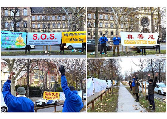 11月26日,中东欧国家联盟(CEEC)第六次会议在匈牙利首都布达佩斯举行。匈牙利部份法轮功学员聚集在中国大使馆前和平抗议,呼吁各界制止中共对法轮功的残酷迫害。