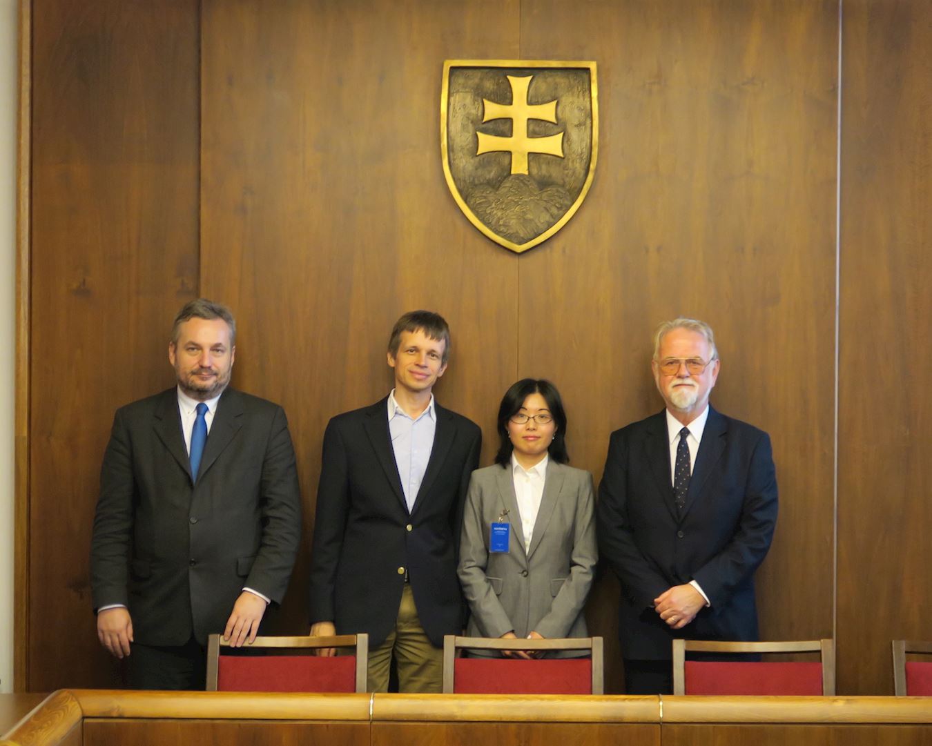 ![]() 图1:(从左至右)斯洛伐克国会议员Ondrej Dostal、斯洛伐克法轮大法学会代表Marek Tatarko、追查国际代表王海燕及斯洛伐克国会议员Peter Osusky于十月二十六日在斯洛伐克国会合影。 |