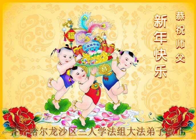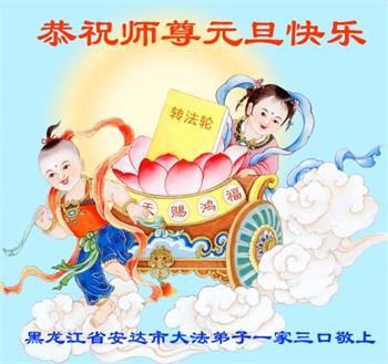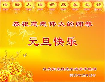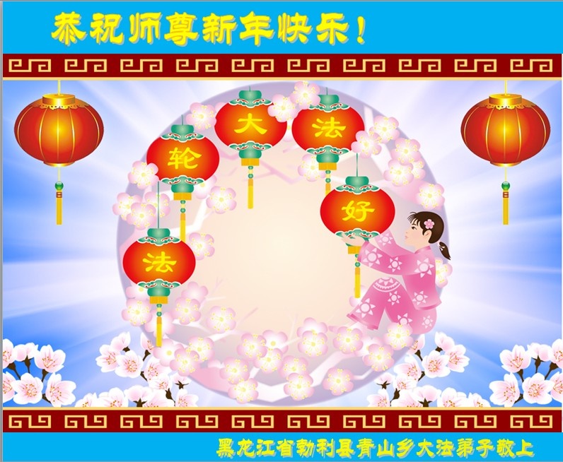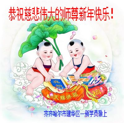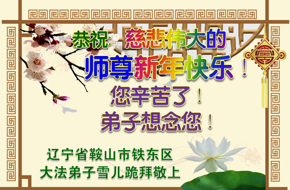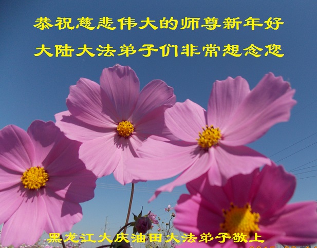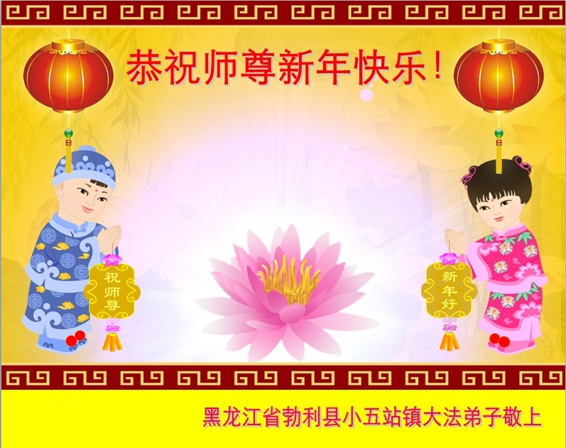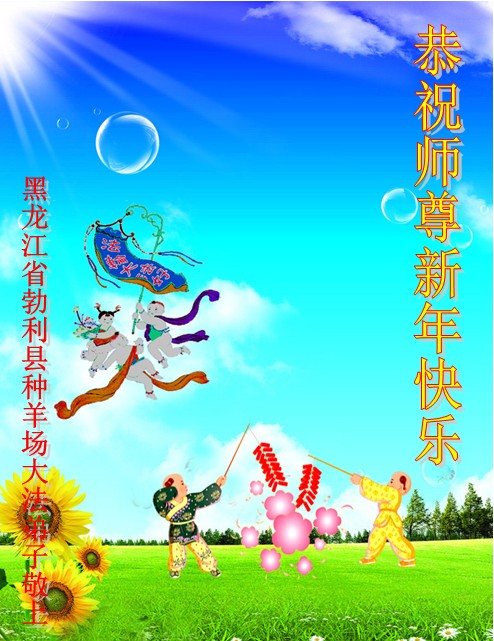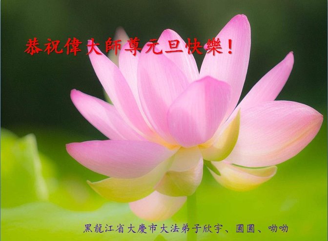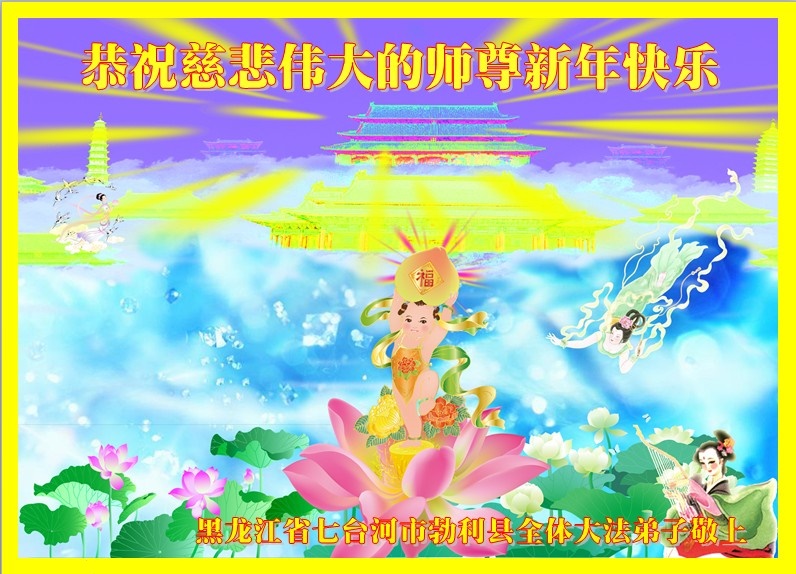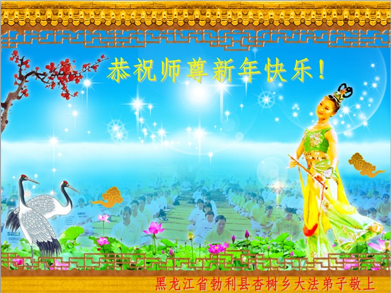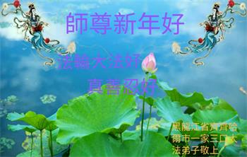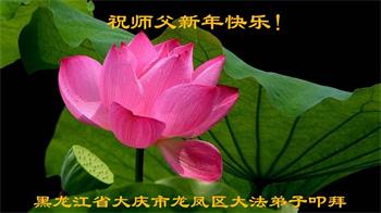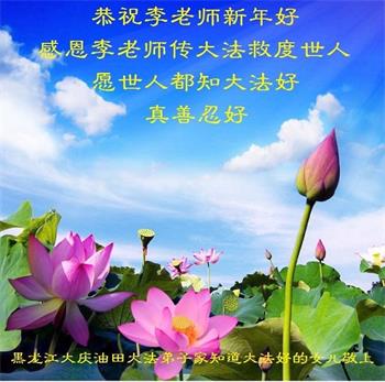 我是黑龙江大庆油田大法弟子的女儿。我知道“法轮大法好”并在大法中受益。我恭祝慈悲伟大的李老师新年好!新年快乐!