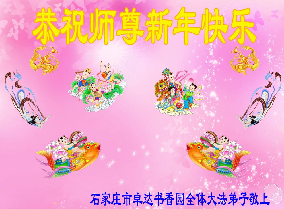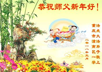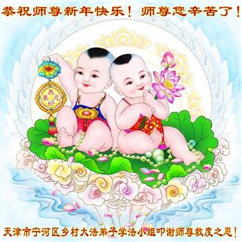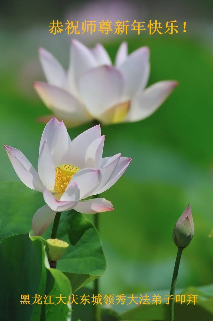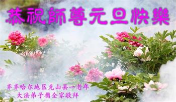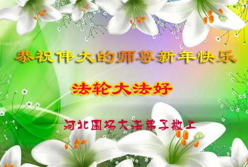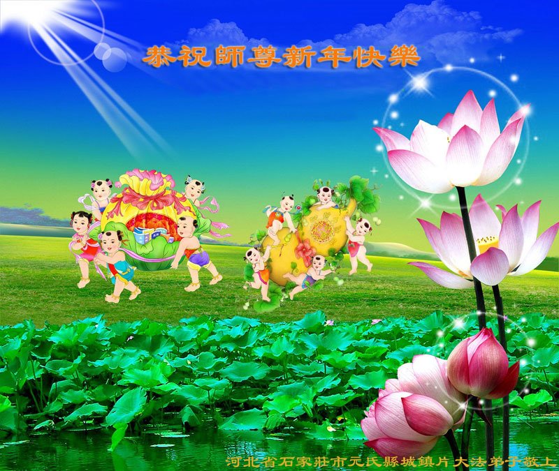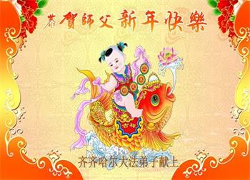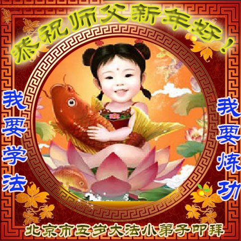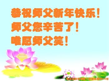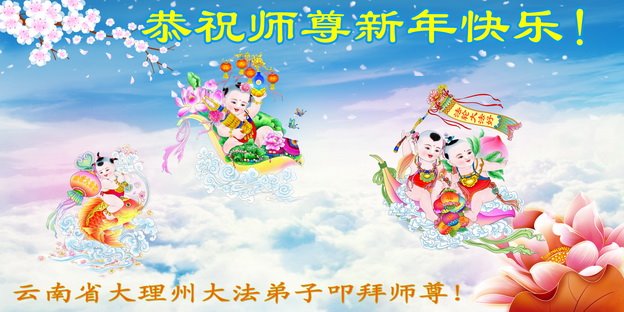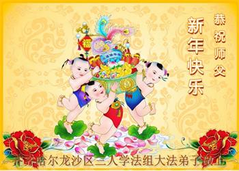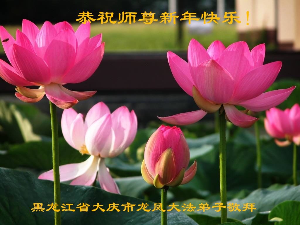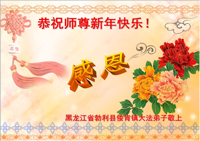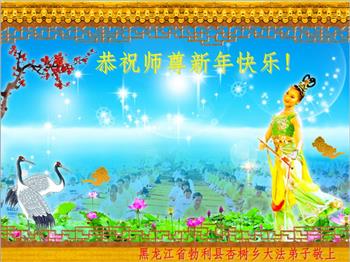 我是黑龙江大庆油田大法弟子的女儿。我知道“法轮大法好”并在大法中受益。我恭祝慈悲伟大的李老师新年好!新年快乐!