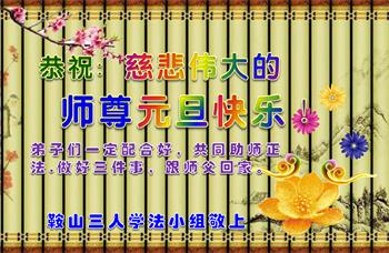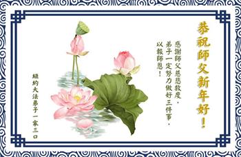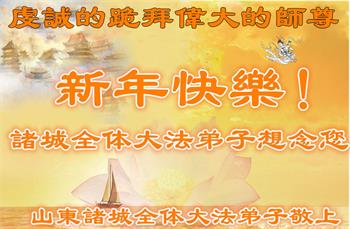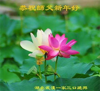 山东招远市一家四口恭贺李大师新年好!他们说:“在此感谢李大师救了我儿子一命!感谢慈悲的大法师父!我们再也不受邪党的谎言欺骗了。”