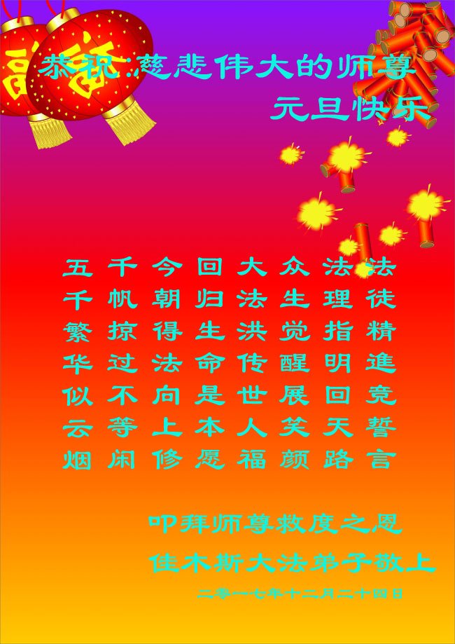 <英文版: http://en.minghui.org/html/articles/2017/12/31/167063.html>新年到来 得大法福报的世人感恩李大师