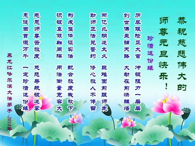 在二零一八年来临之际,恭祝李洪志大师新年快乐!