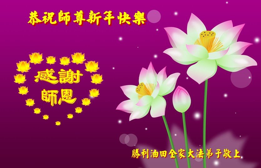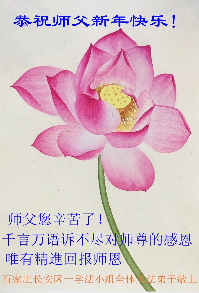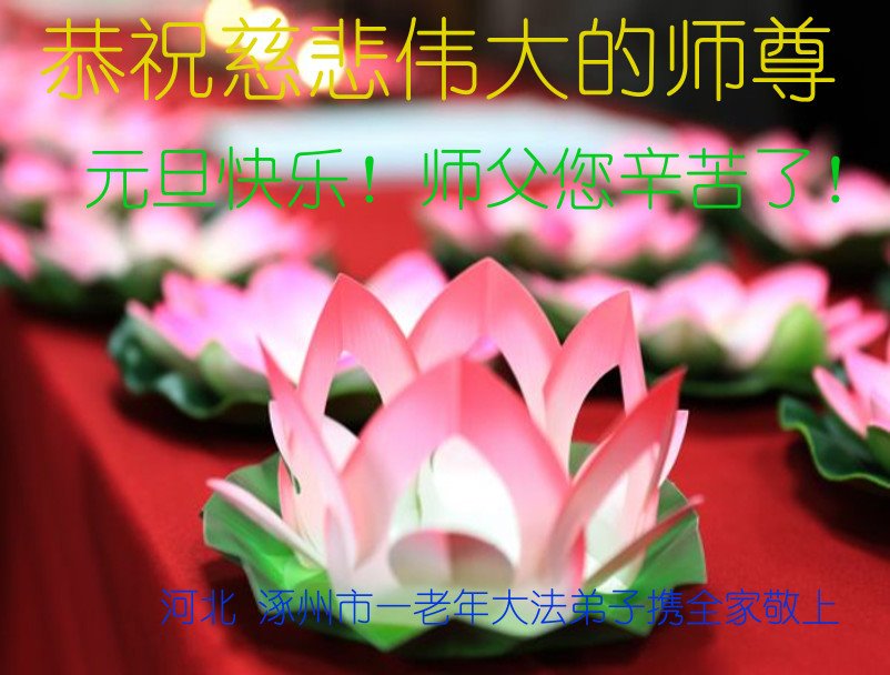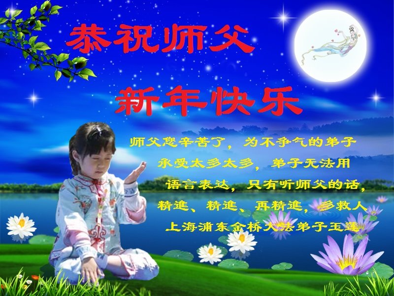 值此新年到来之际,我作为大法弟子家属,向师父献上诚挚的问候,祝师父新年快乐!早日回国!神韵早日登上中国大陆的舞台!叩谢师父救度之恩!