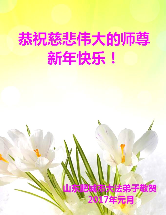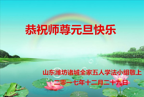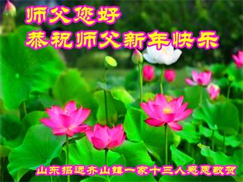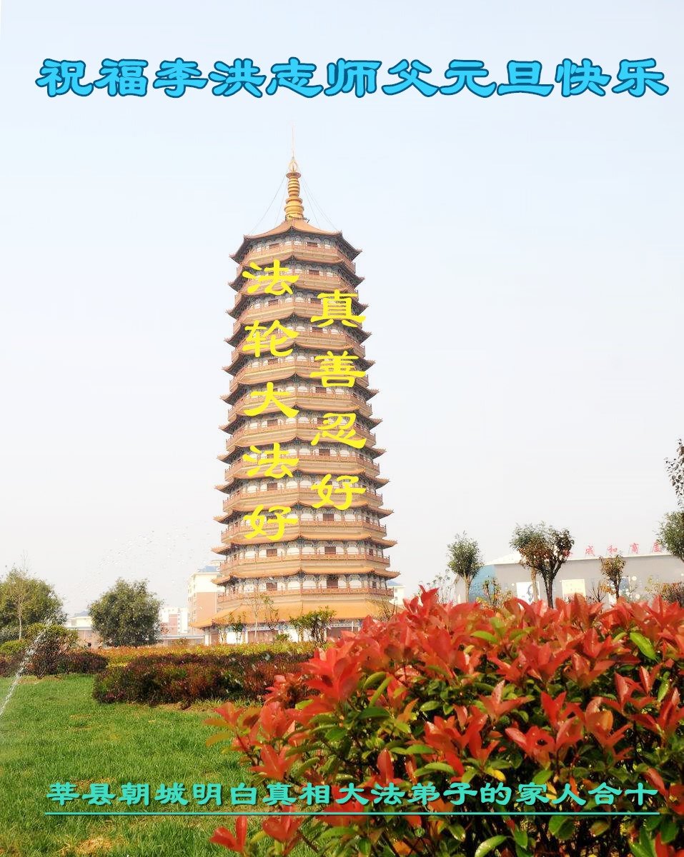 莘县朝城明白真相的大法弟子家人祝李洪志大师元旦快乐!“法轮大法好”、“真善忍好”九个字使我们全家受益。法轮大法佛光普照,真、善、忍牢记心中指导我们做好人,大法小册子让我们知道如何孝敬父母如何帮助他人,神韵晚会让我们感受到真正的中国神传文化是如此的震撼!