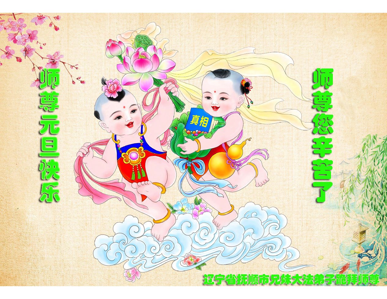 大陆大法弟子恭贺慈悲伟大的师尊元旦快乐!