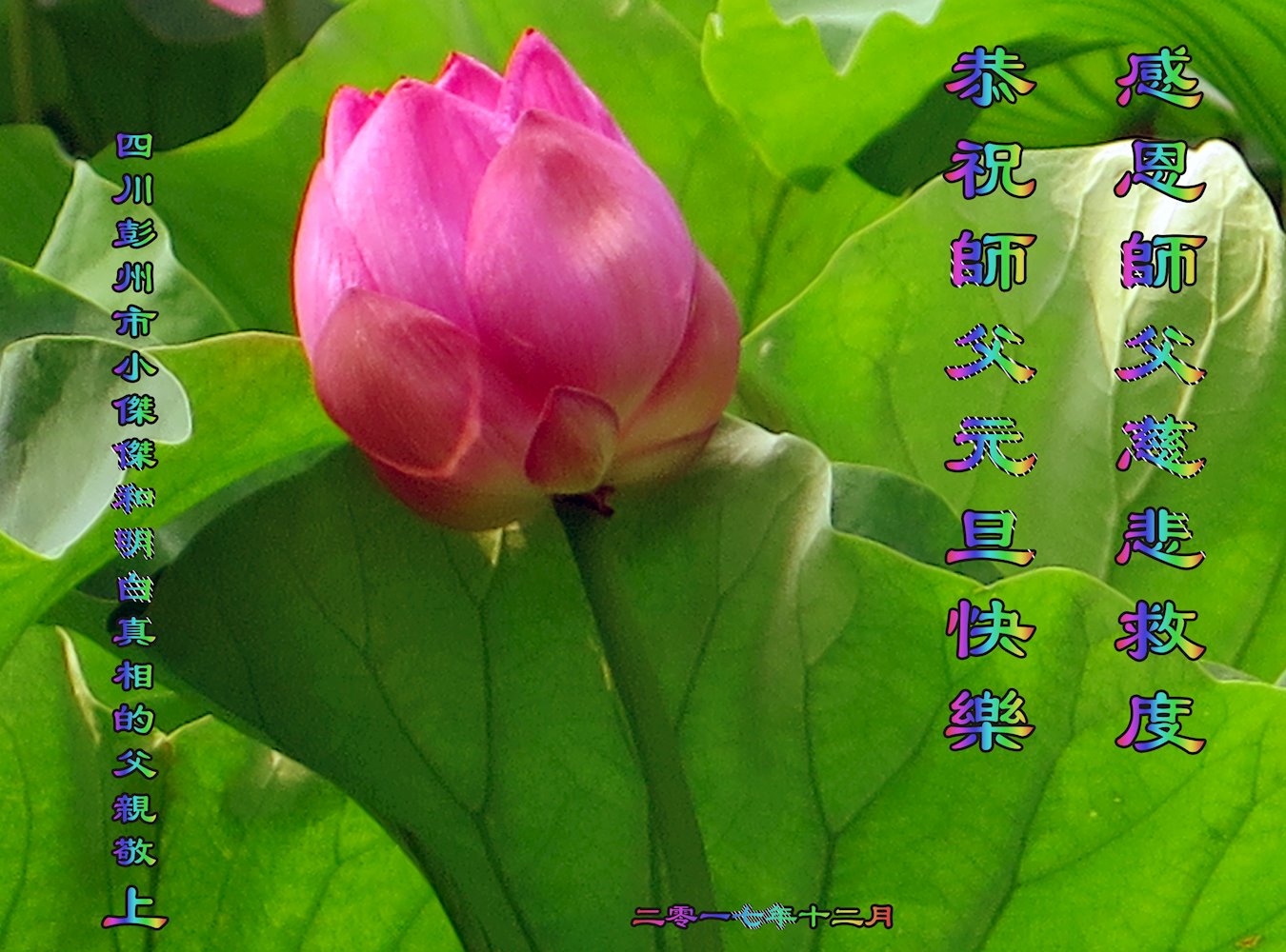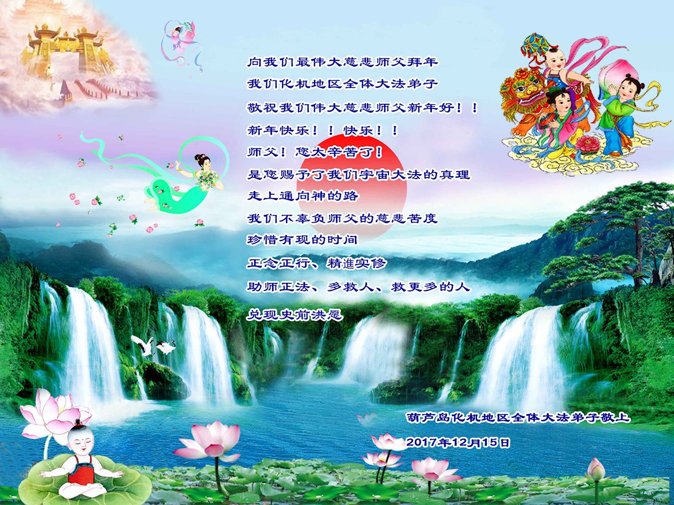 2018新年来到,中国各地民众给大法师父发来贺信,恭祝李大师新年好!盼望师父能早日回国!