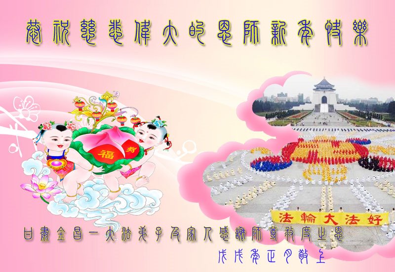 山西省大同国防军工系统大法弟子在贺词中说:“师尊,您太辛苦了!您为了挽救苍宇及众生吃了无数的苦,遭了无数的罪,为了我们这些大法弟子操尽了心”。