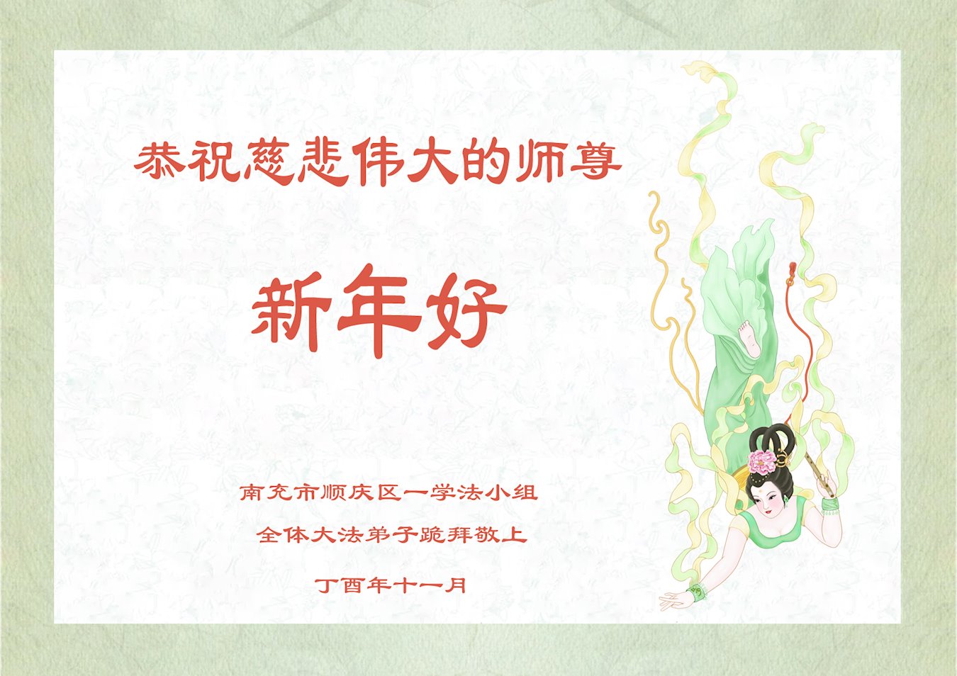 感谢师尊的慈悲救度,恭祝师尊新年好!弟子一定勇猛精進,跟上师父正法進程,多救人。