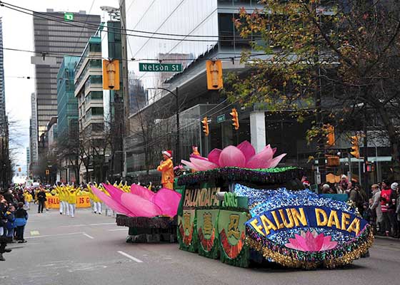 十二月三日,加拿大温哥华法轮功学员参加了在温哥华市中心举行的圣诞大游行,受到观众的热情欢迎和赞扬。