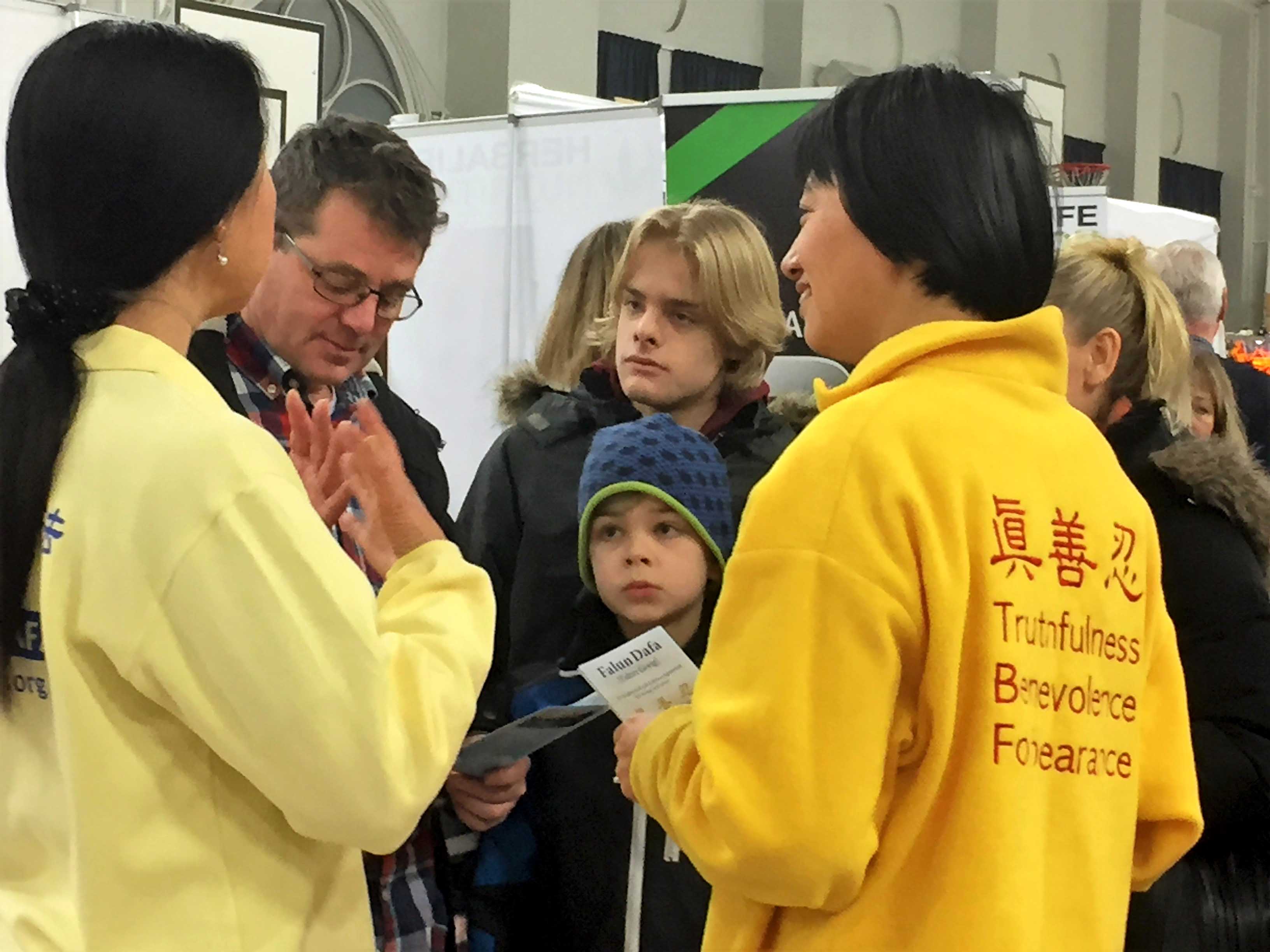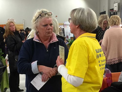 有一位老人来到展位前说:“我知道法轮功。十几年前我就炼过法轮功功法,我那时就感到他的能量场很强。可惜没能坚持下来,不过现在我要重新开始,继续炼法轮功。”