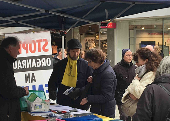 来自德国北威州的部份法轮功学员举办了一个介绍法轮大法和揭露中共活摘法轮大法学员器官的信息日。人们接受真相传单,还有不少人停下来和学员交谈。