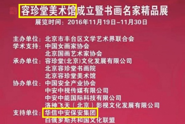 在容珍堂美术馆、书画院的历次重大活动上,华信中安集团都位列支持单位之首,这是为什么?