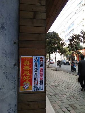 ![]() 图3:地铁站附近举办法轮大法信息日活动。 |