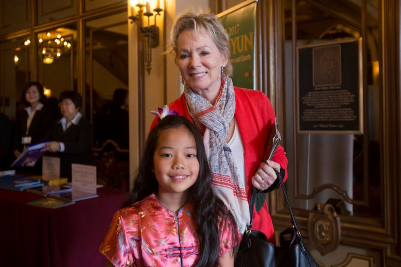 好莱坞明星吉恩·斯马特(Jean Smart)是三次艾美奖得主,也是神韵忠实观众,三月二十六日下午,她带着八岁半的中国养女波妮(Bonnie)在南加州圣巴巴拉格拉纳达剧院观看神韵。过去四年,斯马特带着女儿在千橡市、洛杉矶、北岭市观看神韵,如今已经八岁半的女儿波妮从四岁半就开始接受神韵艺术的熏陶。斯马特说:“目前为止,这是我最喜欢的节目。不知道为什么,但我就是觉得这是我所看到的最好的演出。”