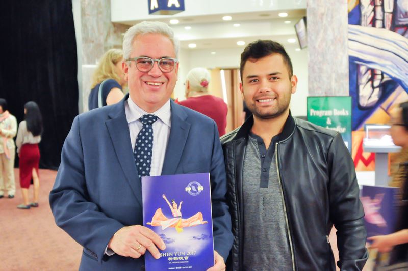 无独有偶,哥伦比亚驻新西兰总领事巴勃罗·安东尼奥·雷博耶鲁斯洛斯(Pablo Antonio Rebolledo Schloss)先生在新西兰奥克兰ASB剧院观看神韵中场休息时高兴地说:“我听说神韵也有团在南美洲巡演,在我的国家首都麦德林演出,我的家人和朋友都在那里。我在这里听说神韵后,我就告诉他们赶快去看。今晚看完演出我要马上发短信给他们,我要告诉他们,你们一定要去看,观赏这场演出你们会近距离地看到中国的历史、表演艺术、文化和舞蹈。” “我太感动了,太杰出美妙了。演出服装无以言表的美丽多彩,还有五千年的文化。”
