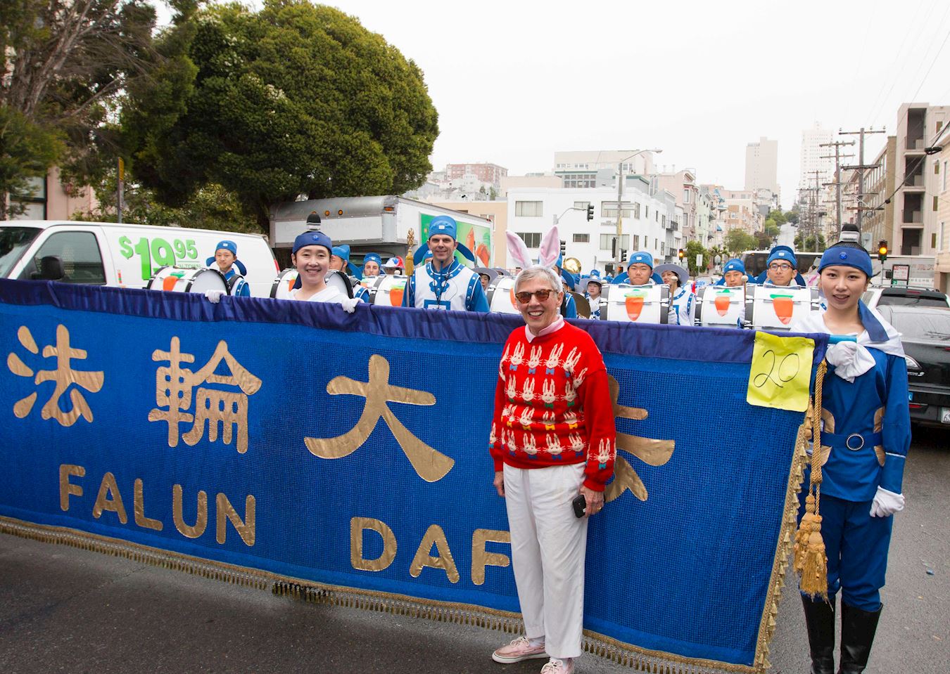 游行主办者、旧金山联合街区协会主席Eleanor Carpenter非常感谢法轮功学员参加旧金山复活节游行。她说:“毫无疑问,法轮功天国乐团是所有参加复活节游行中当之无愧的最优秀的队伍。如果没有天国乐团的参加,我们办不成这个游行。”
