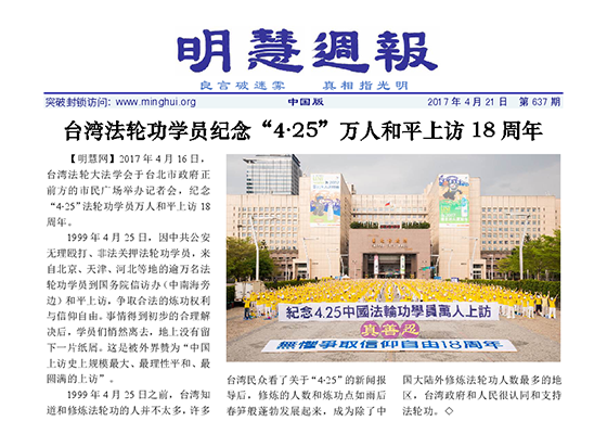 台湾法轮功学员纪念“4∙25”万人上访18周年
