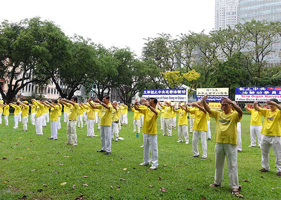 新加坡法轮功学员于四月十八日,在芳林公园以功法演示、反活摘器官征签及美术作品展等形式,向人们展示法轮功学员和平理性反迫害的不变风范。