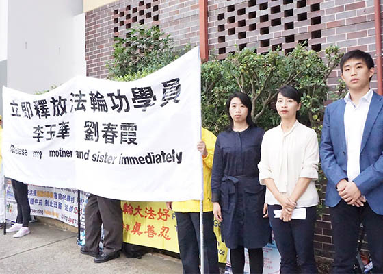 部份法轮功学员在中国驻悉尼总领馆对面的街道上举行了新闻发布会,要求释放被绑架的陕西省法轮功学员李玉华和刘春霞……