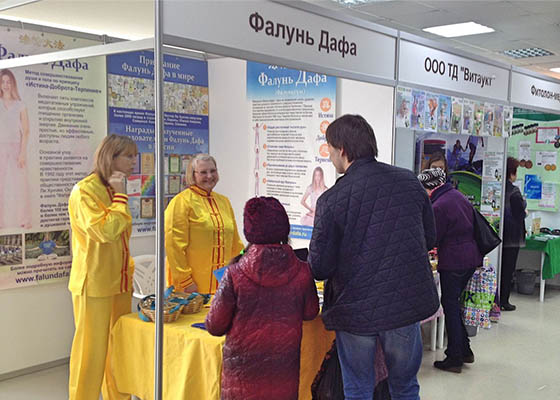 二零一七年四月十二日至十六日,法轮功学员应邀参加了在俄罗斯大诺夫哥罗德城(Novgrod)举办的“美丽健康展”。