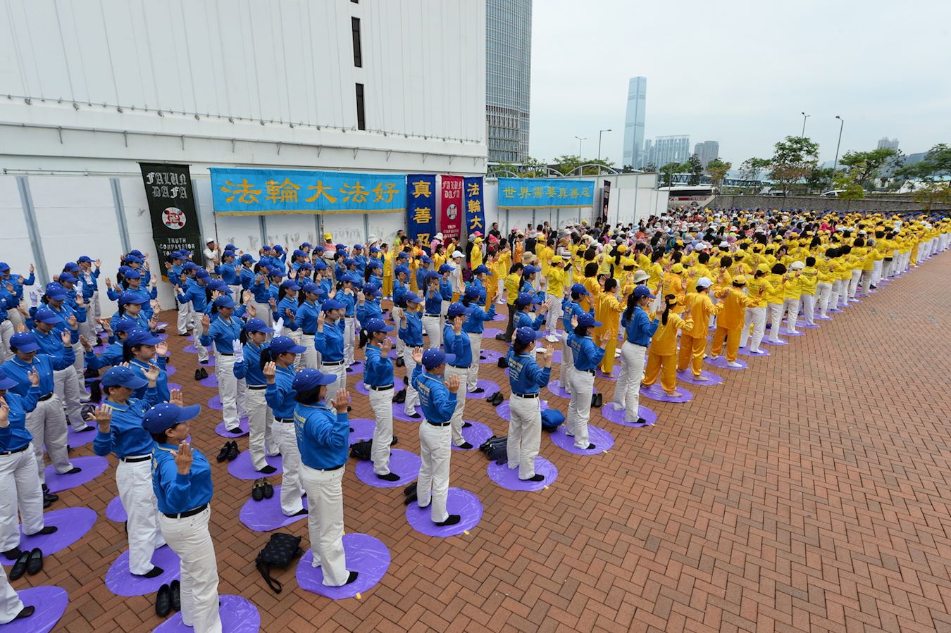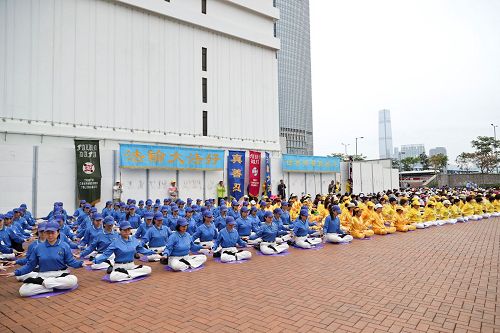 ![]() 图2~4:集会前的清晨上午,法轮功学员齐聚中环爱丁堡广场大炼功。 |