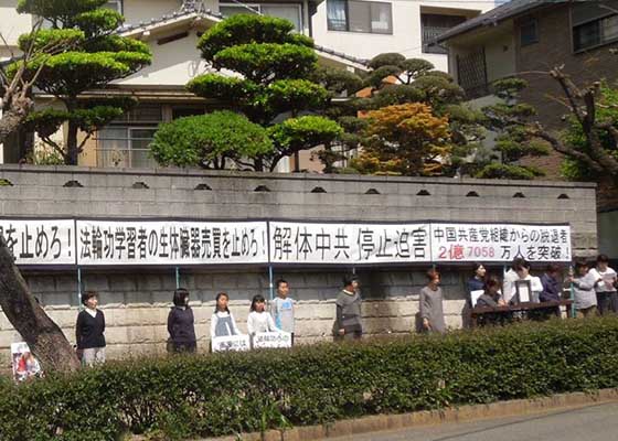 四月二十二日,日本熊本地区的法轮功学员聚集在驻福冈中领馆和驻长崎中领馆前,向日本民众揭露中共残酷迫害法轮功的真相。