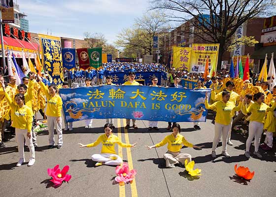 二十三日,纽约法轮功学员在法拉盛举行纪念四二五和平上访十八周年大集会,同时颂扬大法弟子大善大忍的胸怀与道德勇气,展现光明与希望。