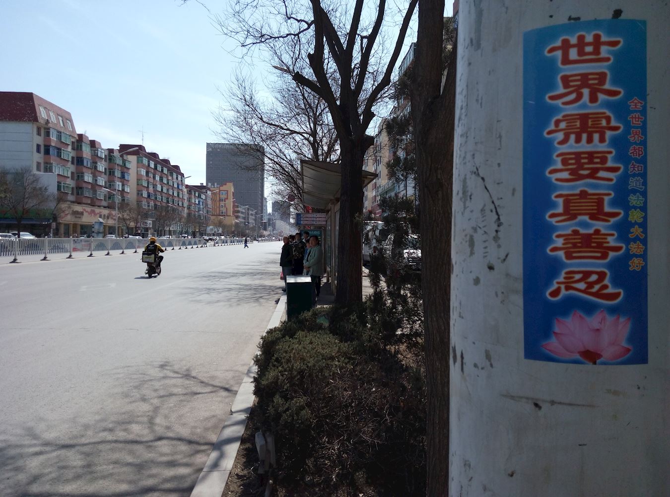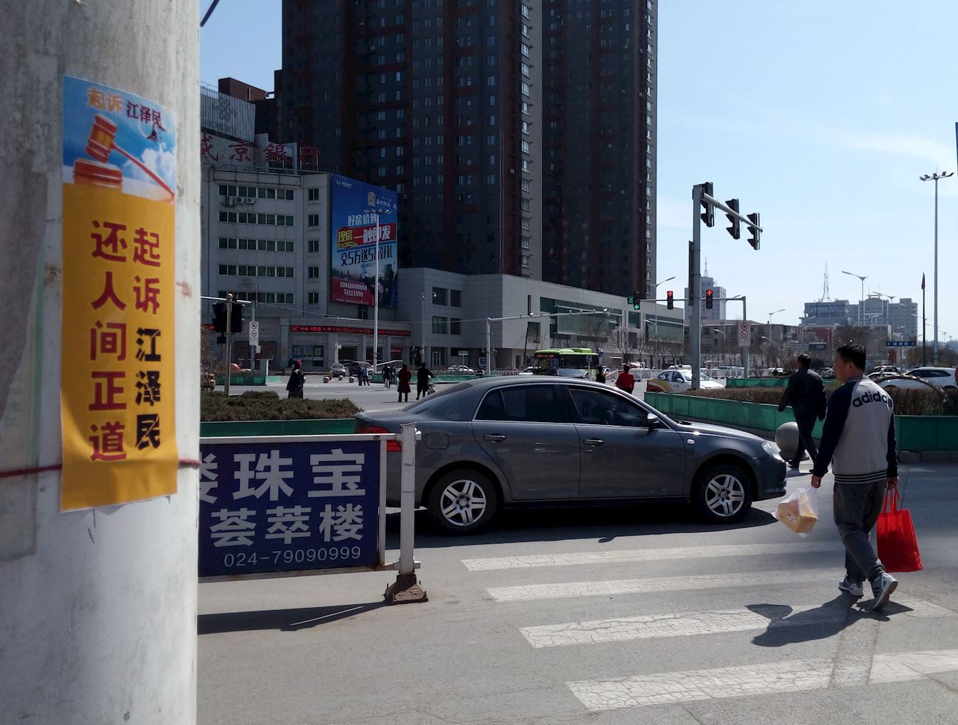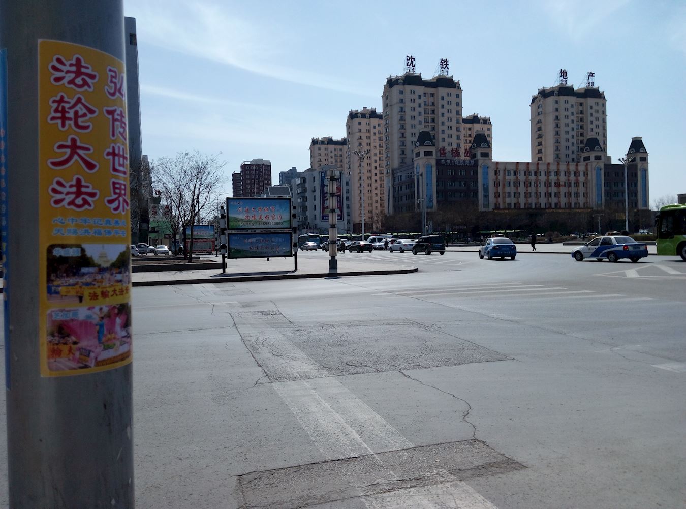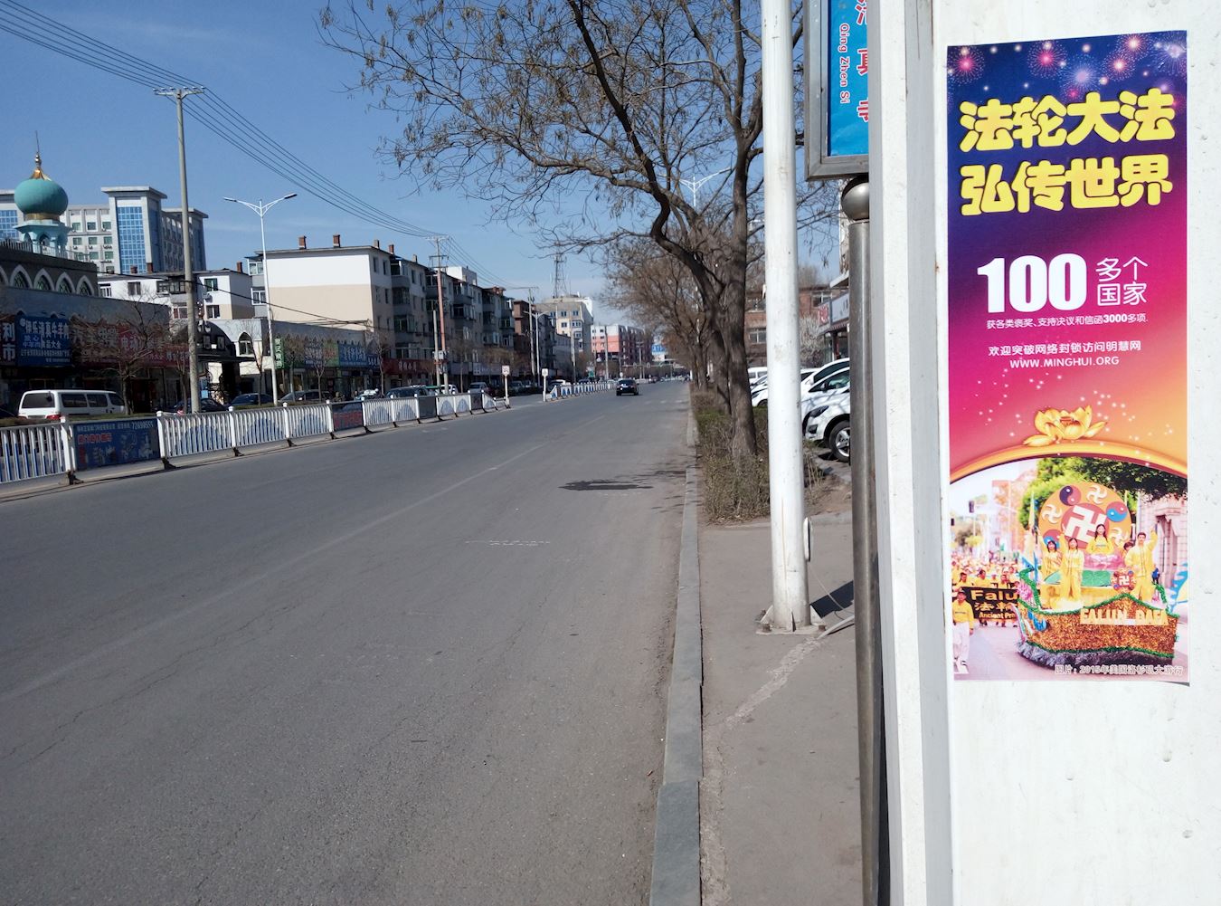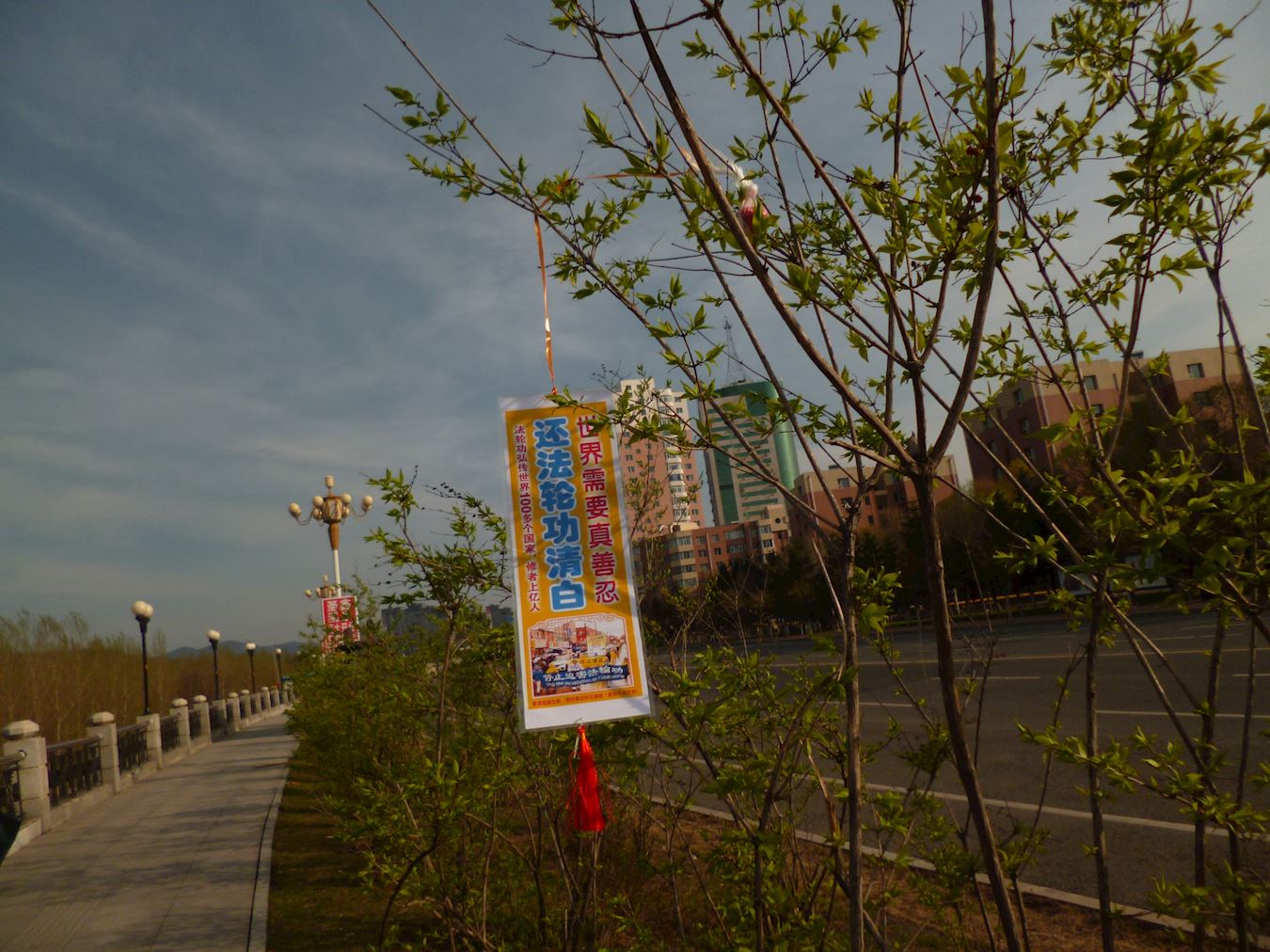 抗议地点因是交通要道,来往车辆络绎不绝。法轮功学员在马路两侧打出“按一下喇叭,为制止迫害法轮功”的牌子,不时有司机减缓车速,看到大横幅上的内容后,或者按喇叭,或者冲学员伸出大拇指。从早晨六点开始,长长短短的汽车喇叭声传进中领馆,表达人们对中共罪行的厌恶,同时提醒里面的人正视门外的抗议。