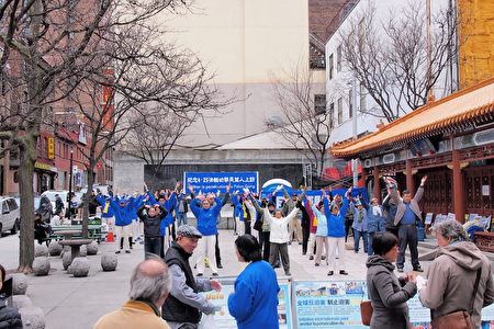 ![]() 图1:法轮功学员在法拉盛举行纪念四二五和平上访十八周年大集会 |