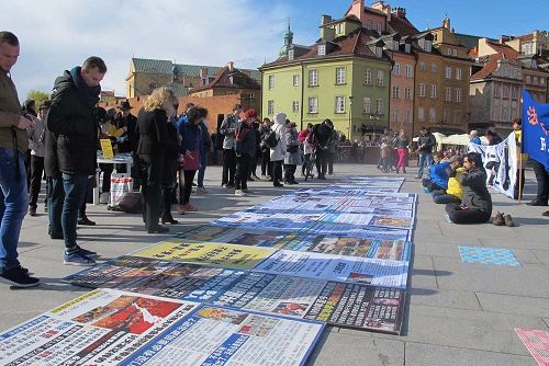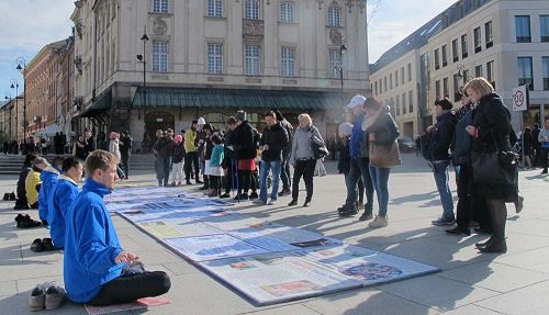 当天,学员们在广场上拉起横幅,摆出真相展板及信息台,向络绎不绝的行人讲真相,揭露中共邪党迫害法轮功的罪行。很多人在征签簿上签名,支持法轮功学员反迫害。