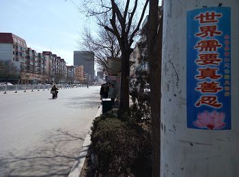 “法轮大法好”的信息在辽宁铁岭的大街小巷广泛传播;4.25期间吉林市法轮功学员向世人展现真相展板、树挂和粘贴