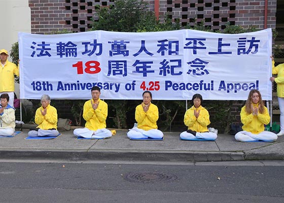 在四二五逾万名法轮功学员和平上访十八周年之际,悉尼法轮功学员分别在中领馆和市中心的海德公园集会及举办讲真相、征签等系列活动。
