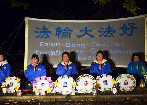 澳洲首都堪培拉的法轮功学员在中使馆前的静坐以烛光守夜的形式延续到晚上8点,纪念四二五18周年、悼念在中共迫害中失去生命的学员。