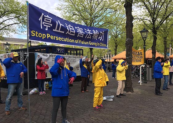 荷兰法轮功学员为纪念四二五上访集会(图)