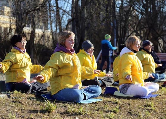 四月二十五日,部份俄罗斯法轮功学员聚集在莫斯科中领馆前,和平抗议中共对法轮功学员的残酷迫害。
